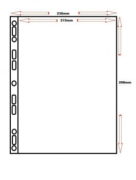 The pages have top opening pockets and are punched with 11 holes to fit many 2, 3 or 4 ring binders. Ideal pages for Chiltern Binders. Pages measure 235mm (w) x 298mm (h).